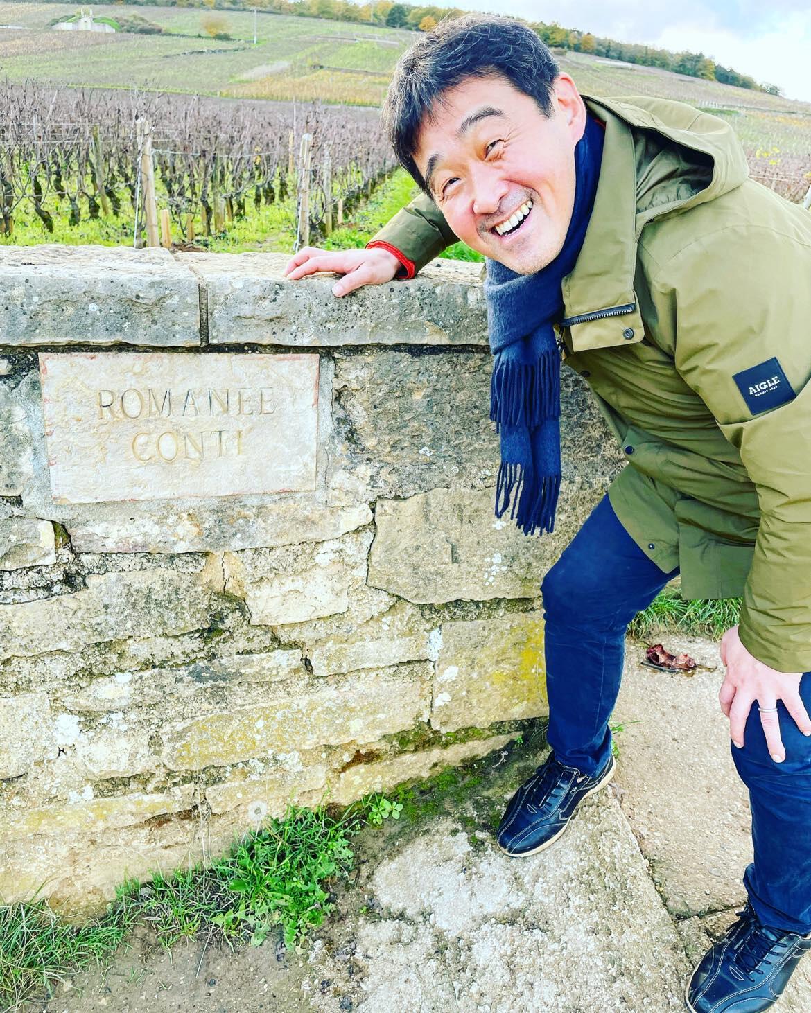 ▲20年以上に渡り、毎年フランスを訪れているという菊地シェフ。ブルゴーニュの畑にて