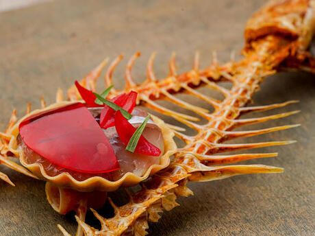 今回講師に相原 薫シェフ(「サンプリシテ/Simplicité」)をお迎えします。フランス語で簡潔さ、サンプルであることを意味する店名「Simplicité」は古くは「真っ直ぐな誠実さ」を意味していました。人・食材・料理に対して常に「Simplicité(サンプリシテ)」な心でありたいとのシェフの思いが込められています。また「<簡潔さ>は美(味)しさの原点であり、終着点」という相原シェフが得意とするのは、魚によって熟成を変え、魚本来のポテンシャルをさらに引き出すテクニックです。